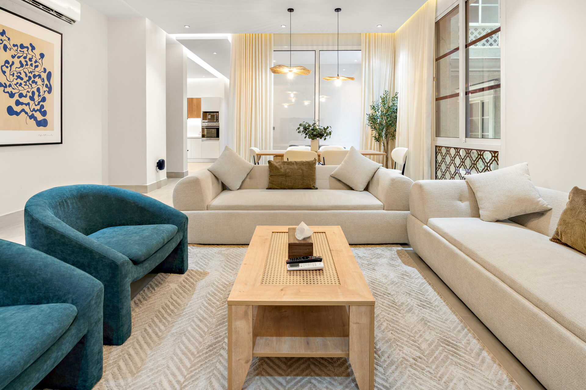 Welcome to Nuzul — enjoy elegance and comfort in this luxurious three-bedroom apartment located in Riyadh’s upscale Al Malqa district. Spanning 200 sqm, it perfectly combines modern style, space, and sophistication. Just 9 minutes from Boulevard City, 8 minutes from Sulaiman Al Habib Metro Station, and 15 minutes from the airport. Features include a modern kitchen, living room with 75” Smart TV, 3 bedrooms, 3 bathrooms, 3 balconies, air conditioning, laundry room, 500 Mbps Wi-Fi, self check-in, and private parking.